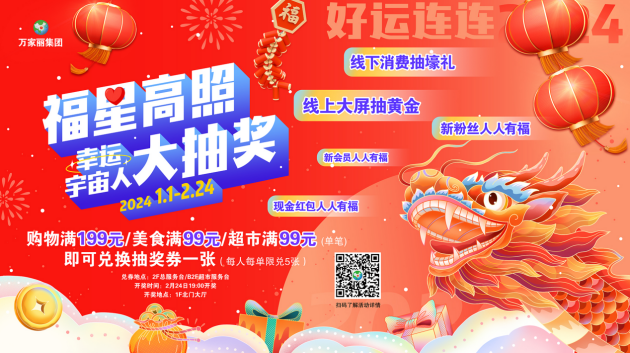 元宵圆,龙欢腾!宇宙中心万家丽福利满满,快和家人朋友一起来打卡,共度元宵美好时光吧!