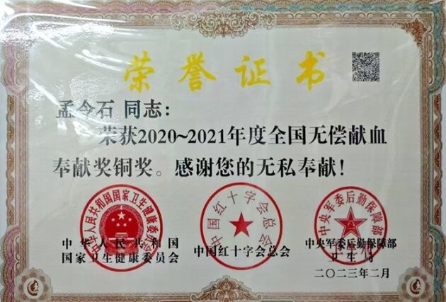 回到地方后,孟令石退伍不褪色,继续从事祖传中医事业,如今学徒已达一百多名,帮助无数患者康复。疫情期间,2019年12月至2020年,他积极投身志愿者工作,多次走进天津各个社区、飞机场、企事业单位、消防队、部队开展义诊。自2017年至今,他无偿献血6800毫升,无形中帮助众多病人摆脱病魔。