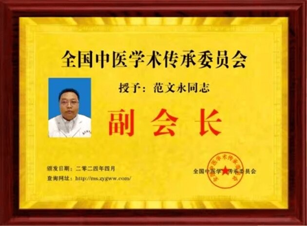 多年来,范文永在学术与行业领域也不断收获各界认可。他是全国名老中医临床技术高峰论坛会特邀嘉宾、中国民族卫生协会专家委员、中国人口文化促进会中医药健康科普分会常务委员、中国中医专家委员会常务副会长等多个权威组织成员。同时,作为大国医学网名誉副主席、汉唐国医传承网名誉副会长以及大美中医学习网首席专家,范文永积极参与中医文化传播、知识培训和经验交流,为中医药事业注入新鲜血液。