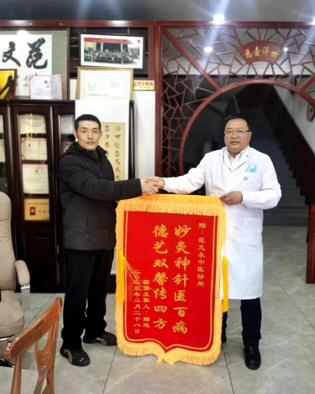 在范文永看来,医者仁心,是中医人最本质的信仰。多年来,他坚持亲自坐诊,日夜不辞辛劳,不仅治病,更重视与患者心灵的沟通。他认为:“病从心生,医从心渡。诊疗不仅要调气血,还要安人心。”他时常用中医经典中的智慧与患者沟通,鼓励他们建立对自身健康的信心,实现医患间真正的信任联结。