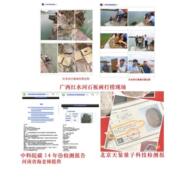 广西红水河石板画本地石农在河中打捞 30 余年,石板画中科院碳 14 年份检测为 11829 年前制作, 中国星科际研究院经过八年研究广西红水河石板画为地球人无法制作的物品 。而且通过人证与物证 ,用反推理逻辑证明石板画内容的可靠性与真实性 ,所以广西红水河石板画将成为证明中国历史乃至世界历史的物证。