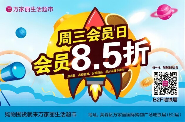 端午提前购,“粽”享真实惠。万家丽生活超市每周三会员享全场8.5折(油米盐、高档名酒、特价商品不参与),地铁2、5号线直达卖场,且消费满额尊享免费停车,更有不定期好礼相送。要购物要囤货,就来万家丽生活超市!