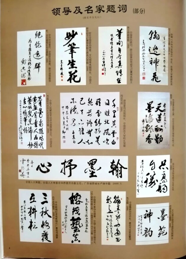 他曾被文化部中国艺术研究院、世界杰出华商学院、新加坡、泰国等中外多方特聘为书画师、首席专家、客座教授、院士、研究员、荣誉主席、名誉院长、顾问等; 他从小爱文习书,遍临古今法帖,并参照现代,博采众长,其各类书法作品(含硬笔书法)潇洒自如,意态多方,常出新意,韵味十足;其榜书独树一帜,精彩绝伦。