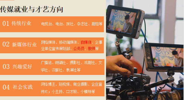 新媒体行业的兴起,使得传媒人才的需求量只增不减。掌握策划、剪辑等传媒方面的技巧,成为了许多行业必不可少的敲门砖。电视台、电台、报社、剧组等传统媒体和大小型企业都需要大量的传媒专业人才。
