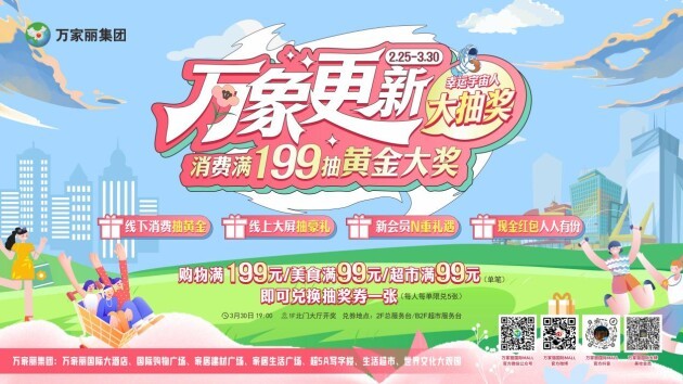 宇宙中心万家丽早已满园春色,活动异彩纷呈,迎接四面八方朋友来踏青。黄志明董事长微博“宇宙中心发言人”4月6日抽苹果15、索尼微单相机、苹果Ipad、MAC彩妆礼盒等;3月30日万象更新·幸运宇宙人大抽奖抽黄金、手机;万家丽国际大牌美妆积分全国通用,价格低于免税店;万家丽超15万平方米全球最大地铁美食城,连吃365天不重样;万家丽生活超市会员每周三会员享全场8.5折……