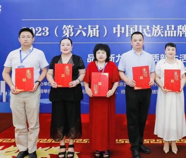 图为2023年7月,四川阿甘妈在京领奖——“2023品牌影响力(行业)十大领军企业”“2023中国民族品牌最具影响力企业”。