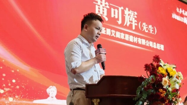 湖南省圣爵艾阁家居建材有限公司总经理黄可辉先生发言表示,作为从小在万家丽长大的创二代,家族的事业起步与辉煌都跟万家丽息息相关,最早父亲是在高桥做木地板生意,听闻了黄志明董事长高瞻远瞩的经营理念与规划,2002年将圣爵艾阁湖南旗舰店开进了万家丽,并带着一众家族成员合伙投身建材商海,成为万家丽第一批的忠实商户!刚进万家丽不久,圣爵艾阁就能做到月销售超一百二十万,年销售近两千万,一场活动下来光定金就能收到手软,为了取得更好的发展,父亲毅然关掉了高桥的门店,全力经营万家丽旗舰店,如今,在万家丽已经经营二十二年,这个选择,不仅让圣爵艾阁的品牌实现了质的飞跃,更让家族的事业达到了前所未有的高度,当初和父亲同时入驻的第一批老商户几乎人人都是千万富翁、甚至还有资产过亿的,而我们也有了独资建设的厂房,以万家丽为中心全面布局,为提升市场占有率奠定了坚实基础。不要盲目投资四处开店,要做到专而精,精而强,才能不被时代的洪流席卷淘汰出局!只有在万家丽这种本土市场,物业自持的平台上,才能稳步坚定的开创全新的局面。我们用万千事实证明,万家丽是投资者最值得选择的黄金码头,也是实现家族传承、事业长青的财富洼地!未来,我坚信,搭载万家丽这一财富航母,圣爵艾阁的发展将会更上一层楼!