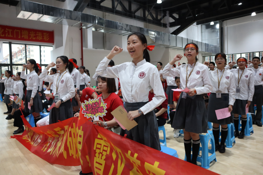 3月17日,江门一实(江门市第一实验学校)九年级中考百日誓师大会,热鼓震天。学子们与家长携手走过“襁褓(婴儿)门-总角(儿童)门-舞勺(少年)门-志学(青年)门”,仪式满满,幸福满满。
